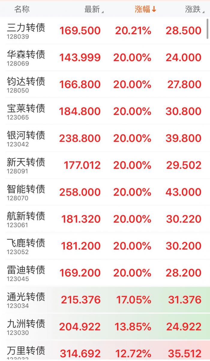 10月26日,可转债行情延续火爆,银河转债、三力转债、智能转债等10只转债涨逾20%,盘中临时停牌。而后行情波动加大,分化严重,截至10:40分许,智能转债跌逾18%,盘初一度涨逾20%临停;盛路转债、凯龙转债和万里转债均跌逾10%。