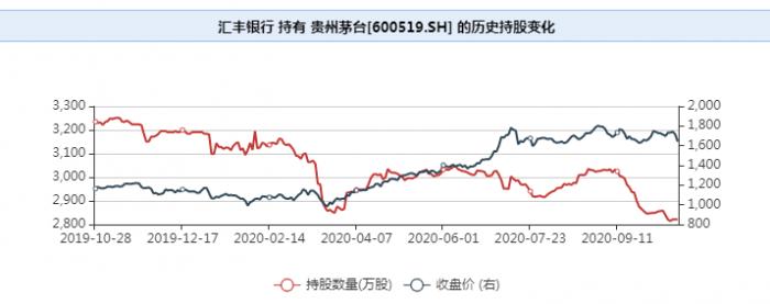 目前,汇丰银行持有的贵州茅台总市值,维持在491亿元左右。