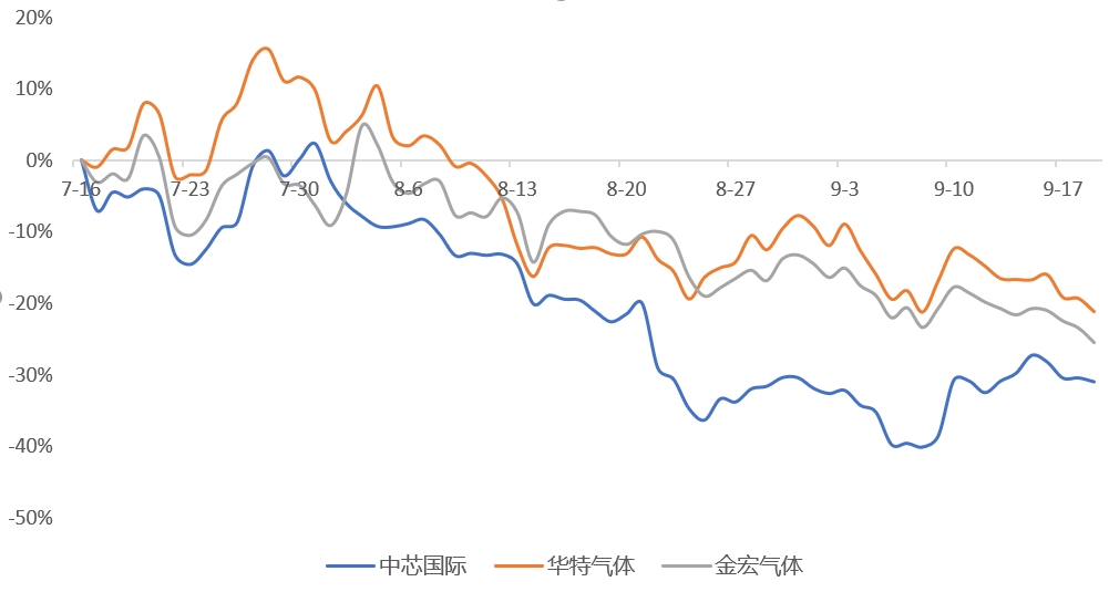 (7月16日以来华特气体、金宏气体与中芯国际走势高度一致)