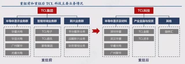 2018年12月7日, TCL集团宣布拟合计以47.6亿元向TCL实业控股(广东)股份有限公司(以下简称“TCL控股”)出售家电、通讯、消费电子等智能终端业务及相关配套业务, 根据2017年末的数据显示,本次出售标的总资产为635亿元,占上市公司总资产的39.61%;2017年标的资产共实现营业收入809亿元,对当年TCL集团营业总收入贡献比高达72.39%,重组后的上市公司将重点聚焦在华星光电的显示面板业务上。