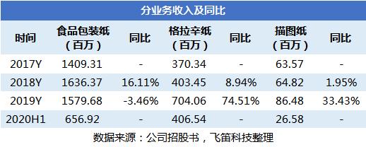 格拉辛纸,即标签离型纸,常被用于生产酒水、医药、零售等行业包装标签和物流标签。2019年,格拉辛纸实现收入7.04亿元,同比大增74.15%,较2018年提升幅度较大。公司在招股书中解释,由于公司江西五星格拉辛纸生产线投产,2019年格拉辛纸销量较2018年上升98.84%,导致2019年公司格拉辛纸销售额较上年增长明显。