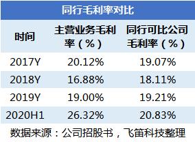 看完收入,再来看公司的毛利率情况。报告期内,公司的主营业务毛利率分别为20.12%、16.88%、19%和26.23%。2020年上半年,公司毛利率上升明显,公司解释,这主要是食品包装纸和格拉辛纸毛利率提高所致。跟同行可比公司(太阳纸业、宜宾纸业、仙鹤股份、民丰特纸、恒丰纸业、冠豪高新、齐峰新材)相比,公司的毛利率水平在2018年和2019年略低于同行,2020年上半年反超同行。