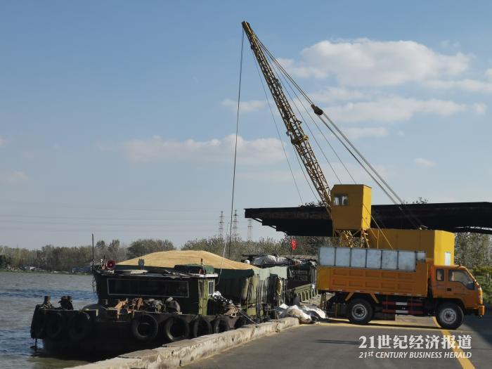 10月23日,江苏省农垦麦芽有限公司,满载着金灿灿麦子的船只从内河射阳河码头停靠后,转用10吨载重的大卡车运到该公司的仓库里等待加工。年产25万吨麦芽,江苏农垦麦芽公司曾创下了2008年江苏省农业产业化项目单体投资最高的记录。