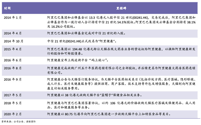 阿里健康起家自收购。