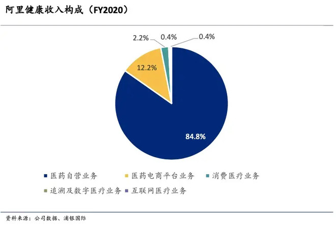 中金证券将阿里健康的业务分为“新零售”(医药自营、电商平台、消费医疗)和“赋能型”(追溯及数字医疗、互联网医院)。