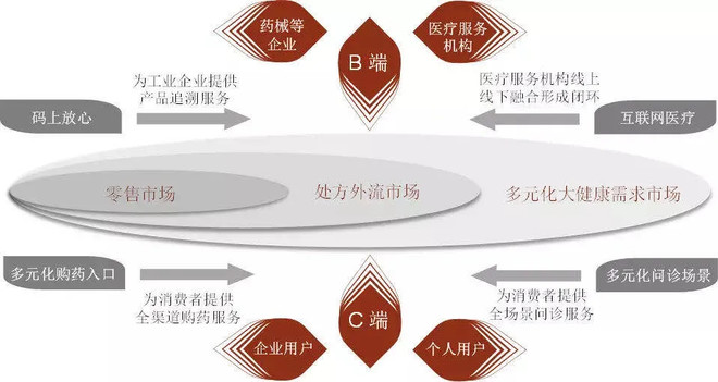 后者为B端药企提供供应链服务、患者教育、药品管理等,也帮助政府及医疗机构实现数据查询、追溯、电商和配送等业务。比如,全国90%以上的药品生产企业、100%的疫苗生产企业均签约入驻“码上放心”平台。