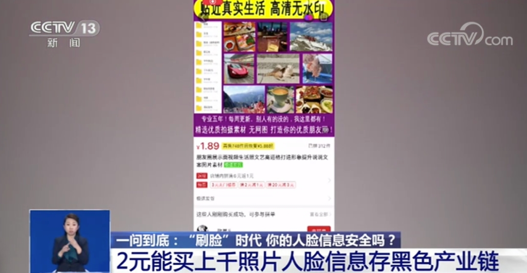 经调查发现,在某些网络交易平台上,只要花2元钱就能买到上千张人脸照片,而5000多张人脸照片标价还不到10元。