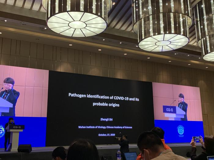10月27日下午,在第十五届国际基因组学大会(ICG-15)上,中科院武汉病毒研究所研究员石正丽做了题目为《Pathogen identification of COVID-19 and its probable origins》的主题演讲。