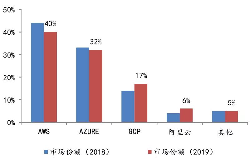 图表9:2018、2019年全球IaaS和PaaS市场份额占比