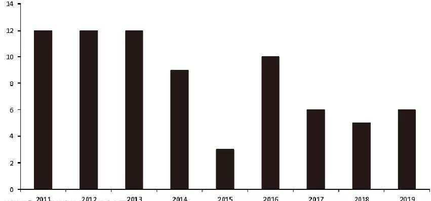 图表11:云计算巨头AWS历年降价次数(次)