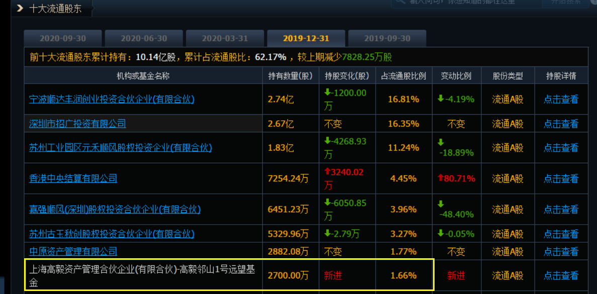 顺丰三季报披露,股神冯柳旗下“高毅邻山1号远望邻基金”退出了前十大流通股股东名单。在此之前,该基金以2300万持股位列顺丰第七大流动股股东。