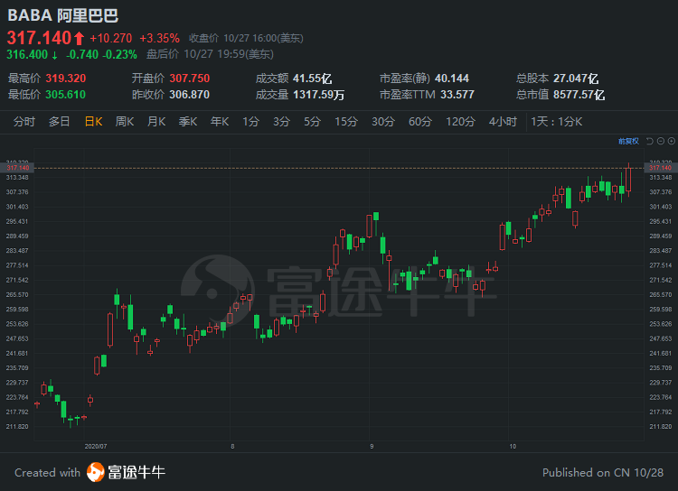 阿里巴巴受此提振,股价走高,截至收盘,涨3.35%创历史新高。