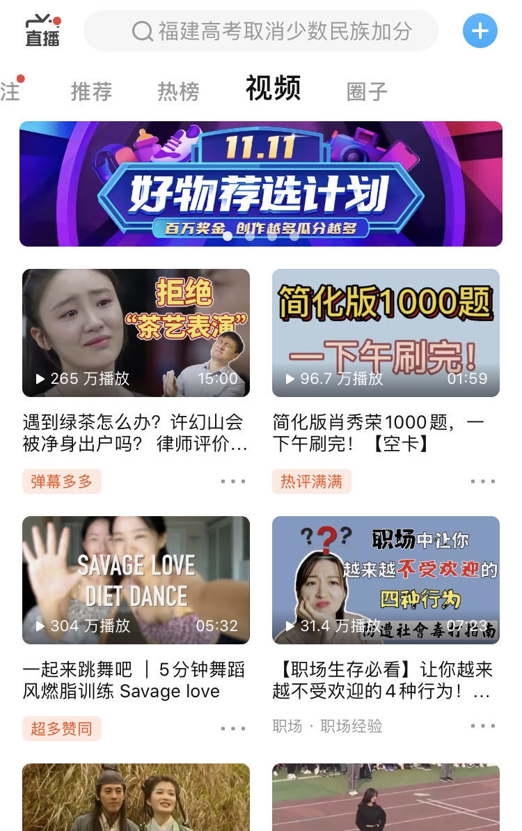 但从行业上来看,中视频这个赛道上可能遇见的对手远比想象中更多,或者说,当中视频这个概念明确出现后,B站、知乎、微博、西瓜视频、微信视频号等平台之间的潜在冲突就浮现了出来。