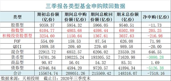 数据显示,从资金流向方向看(排除联接基金),指数型基金三季度总份额增长200多亿份,混合型基金总份额也增长接近650亿份,都在股市的向好阶段,获得了资金的青睐和净买入。但是积极投资股票型产品却净赎回约220亿份。