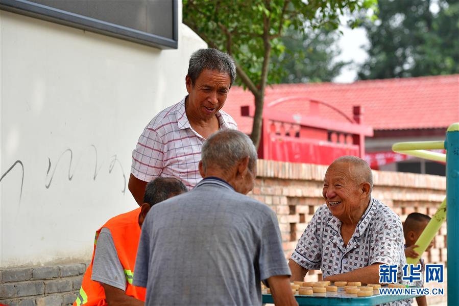河南兰考东坝头乡张庄村的几位老人在下象棋(2018年6月20日摄)。新华社记者 冯大鹏 摄