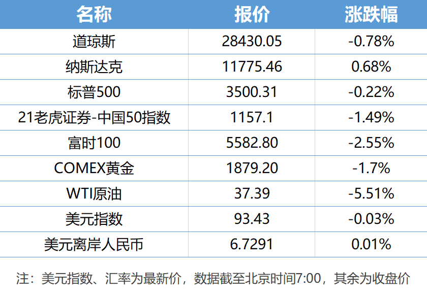 隔夜欧美股市全线重挫,道指收跌3.43%,纳指收跌3.73%,标普500指数收跌3.52%。德国DAX指数跌超4%,法国CAC指数跌3.4%。美油、布油期货均收跌超5%。21老虎证劵-中国50指数跌0.81%。