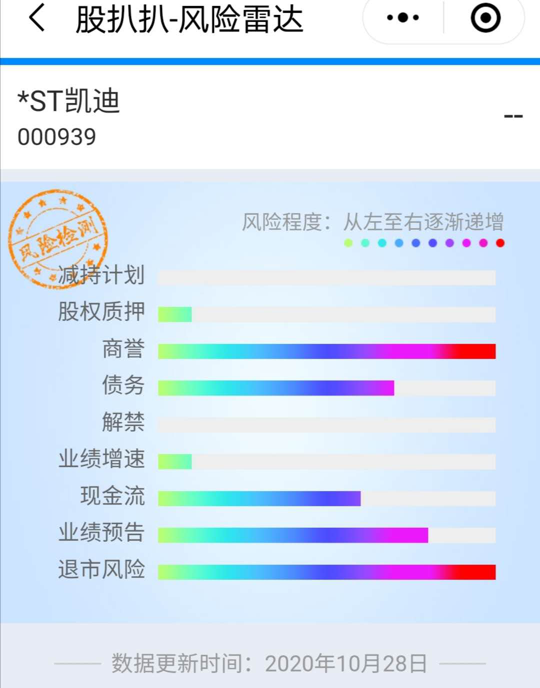 其实,对于个股风险,我们可以用专业风险排除工具股扒扒小程序看一下。