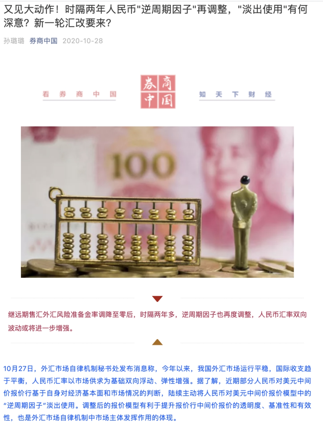 而此次管理层表明:陆续主动将人民币对美元中间价报价模型中的“逆周期因子”淡出使用,怎么理解?
