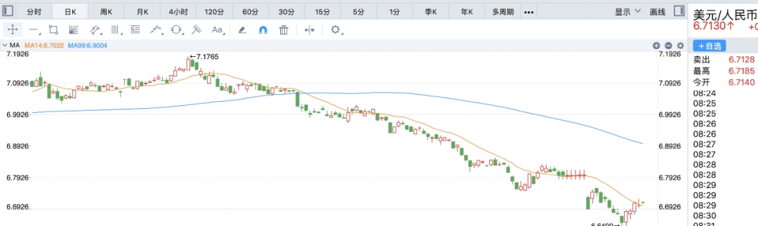 而当前的背景是:人民币对美元汇率从今年5月27日7.1765的低点一路升值到10月21日的6.6400,累计升值超过5000点。说得更直白一点,5月27日1万美元可以换得71765元人民币,而到了10月21日的高点时,只能换得66400元人民币,损失了5365元。