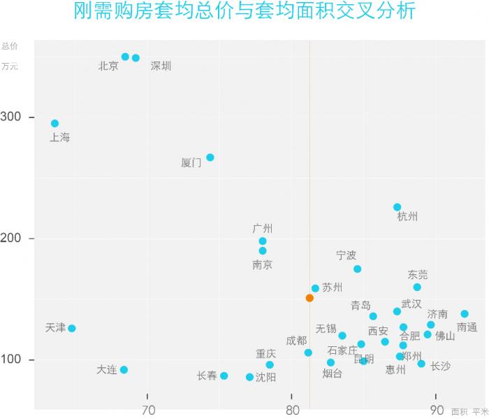 在30个样本城市中,北京、深圳、厦门、杭州等高房价城市,刚需上车均价显著偏离整个市场交易均价。其中,北京刚需客户置业套均总价比全市成交套均价低77万元,深圳低63万元。从房屋总价来看,刚需群体存在着充足的居住提升改善空间。