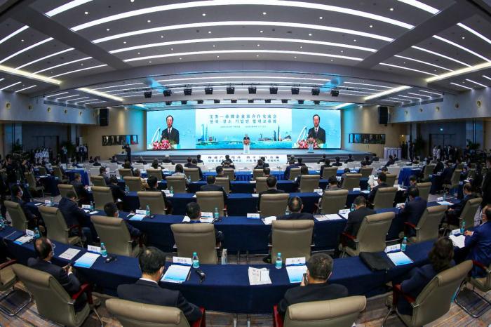 (江苏省长吴政隆在中韩企业家合作交流会上发言。图片由会议主办方提供。)