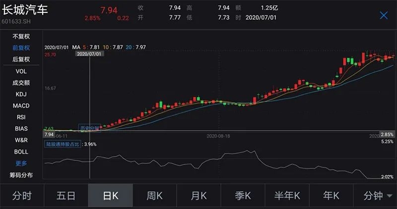 与长城汽车筹码不断集中伴随的,该股三季度以来股价一路上涨,三季度区间涨幅高达148%,10月以来继续保持上涨趋势。