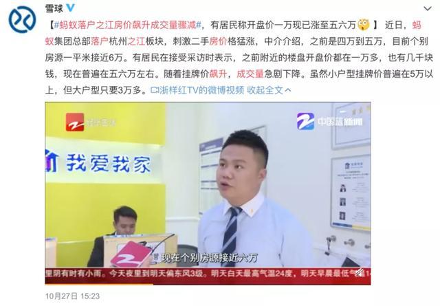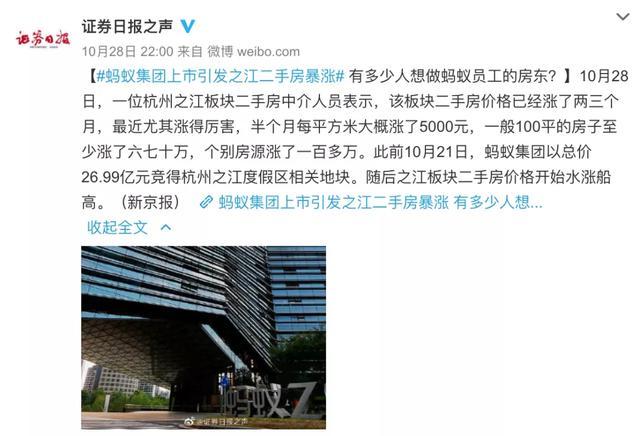 新京报,《蚂蚁集团上市引发之江二手房暴涨 有多少人想做蚂蚁员工的房东?》