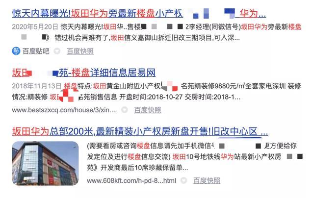 楼盘名花里胡哨长短不一,但宣传点里必须有一句:离华为近。