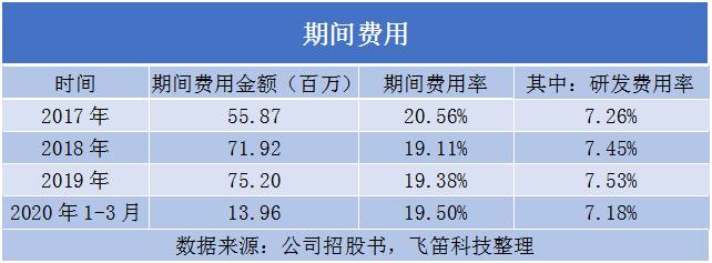 最后来看公司的费用管控能力,报告期内,公司的期间费用金额分别为5587万元、7192万元、7520万元和1396万元,期间费用占营业收入的比例分别为20.56%、19.11%、19.38%和19.50%,期间费用率较稳定。其中研发费用占公司期间费用的比重最大,报告期内公司的研发费用率分别为7.26%、7.45%、7.53%和7.18%。