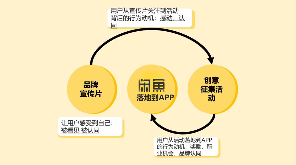 这一切形成了一个基本的产生自传播的链条。后续再通过不断优化,让更多人通过参与活动的行为,落地接触到闲鱼APP,这就最终达成了活动目的。