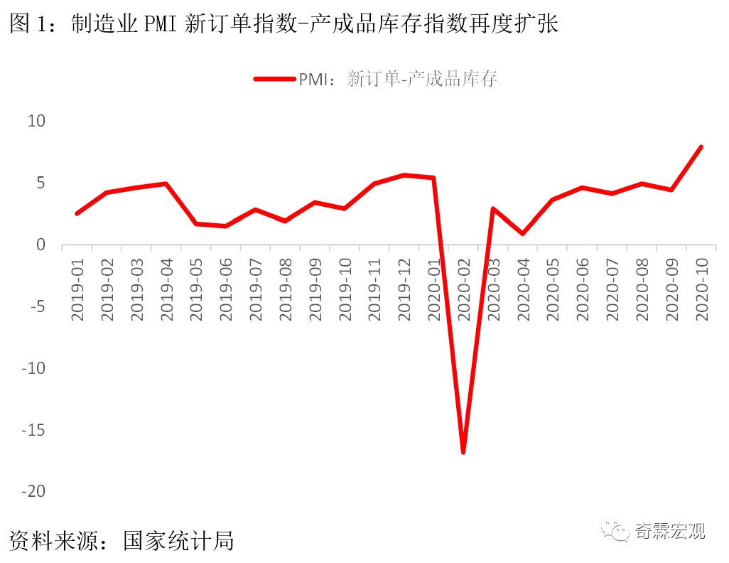 可见,需求是非常好的。好到不需要产出大的放缓就可以大幅去化产成品库存,好到出厂价格指数甚至拉升了,从52.5%提高到了53.2%。所以,PMI新订单减去产成品库存指数重新往上走了。