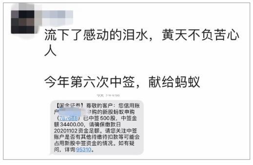 “今年第六次中签献给蚂蚁”!蚂蚁集团70万个中签号里头有你吗?陈光明、林园笑了