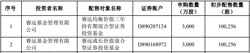 私募基金方面,知名投资者林园旗下的深圳市林园投资管理有限责任公司有111个账号获配。