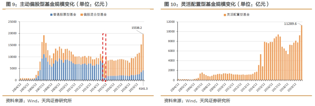 公募基金作为A股市场重要的机构投资者,其专业的投资能力以及广泛的信息获取渠道使得其具有更强的盈利能力。因此,公募基金的配置行为偏好受到各类投资者关注。以股票投资为主的非指数型公募基金产品,可归为两类:主动偏股型基金(包含普通股票型基金和偏股混合型基金)和灵活配置型基金。