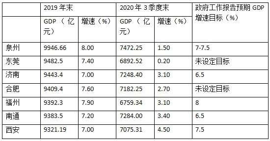 但目前两座城市均存在增速偏低的情况,泉州三季度增速为1.5%,而2020年政府工作报告所提出的全年增速目标是7-7.5%;济南三季度增速为3.10%,而这与年初设定的6.5%目标仍有3.4个百分点的差距。