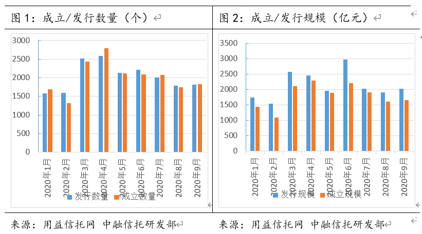 用益信托公布的数据显示,9月集合信托呈现上升趋势,信托计划发行数量和规模在发行端和成立端均较上月有所增加。