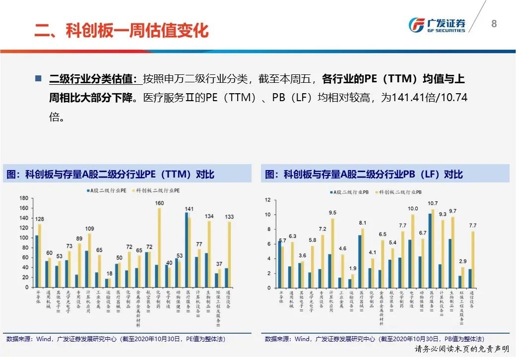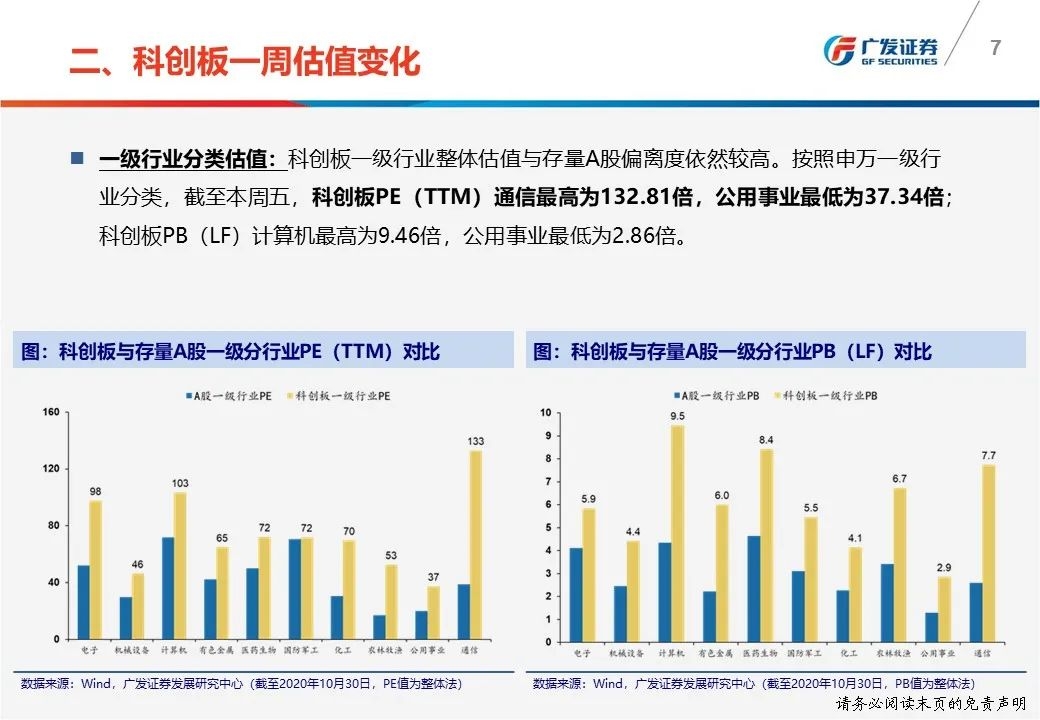 一周估值变化:(1)科创50 PE(TTM)从上周五77.21倍下降至本周五74.01倍;(2)科创板PE(TTM)通信最高为132.81倍,公用事业最低为37.34。