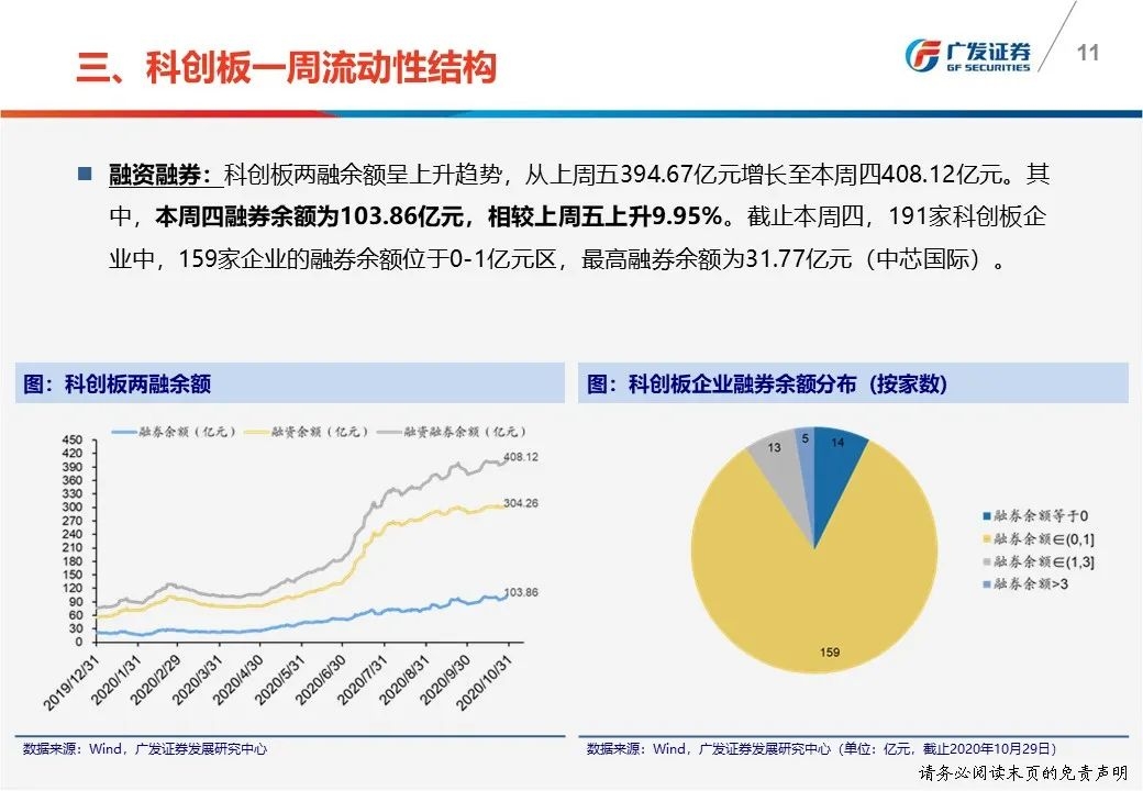 一周流动性结构:(1)本周科创板净买入11.80亿元,机构主动净买入10.67亿元;(2)机构本周主动买入与卖出交易额中分别占比10.87%和9.19%;(3)本周四融券余额为103.86亿元,相较上周五上升9.95%,融券/融资余额比为0.34。