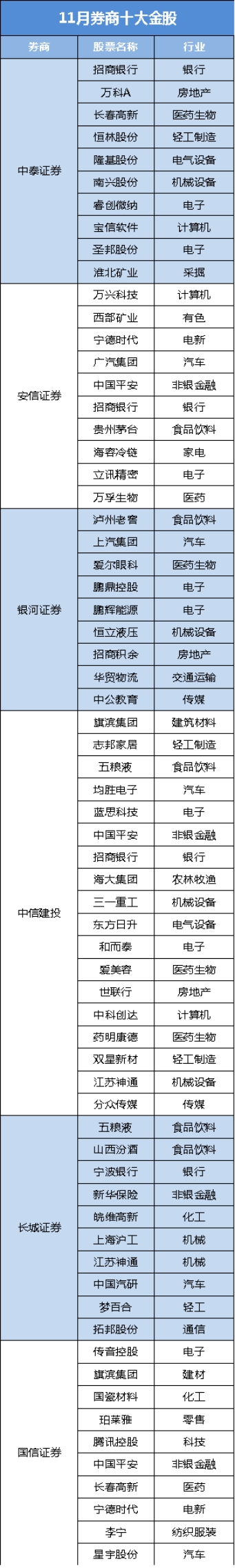 以下是11月金股详细名单: