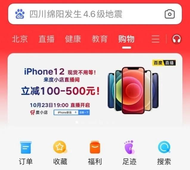 近日,百度旗下电商平台度小店开启「好物新知节」,热度居高不下的iPhone 12成为双十一好物大促的开场产品。百度app购物频道直播中,iPhone12原价现货发售,直播间同时发放三种不同金额代金券,消费者最高获得500元优惠券。