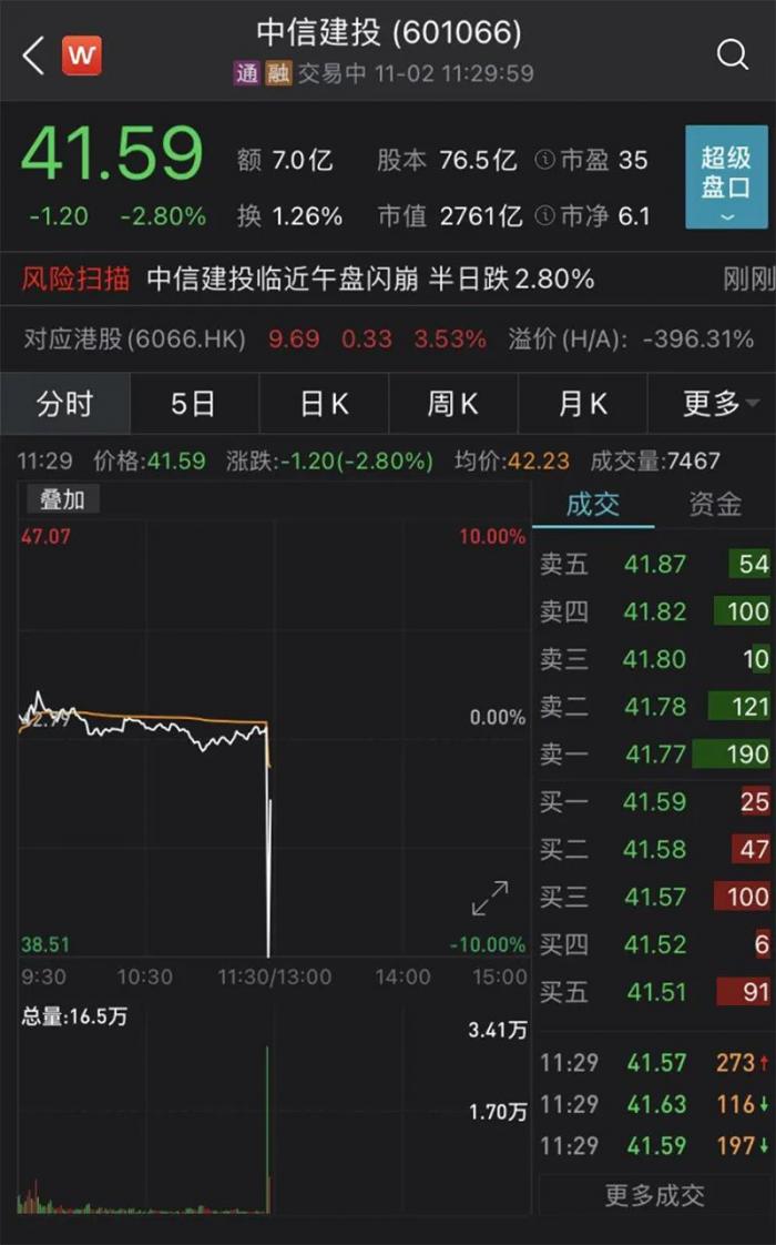 中信建投闪崩跌停