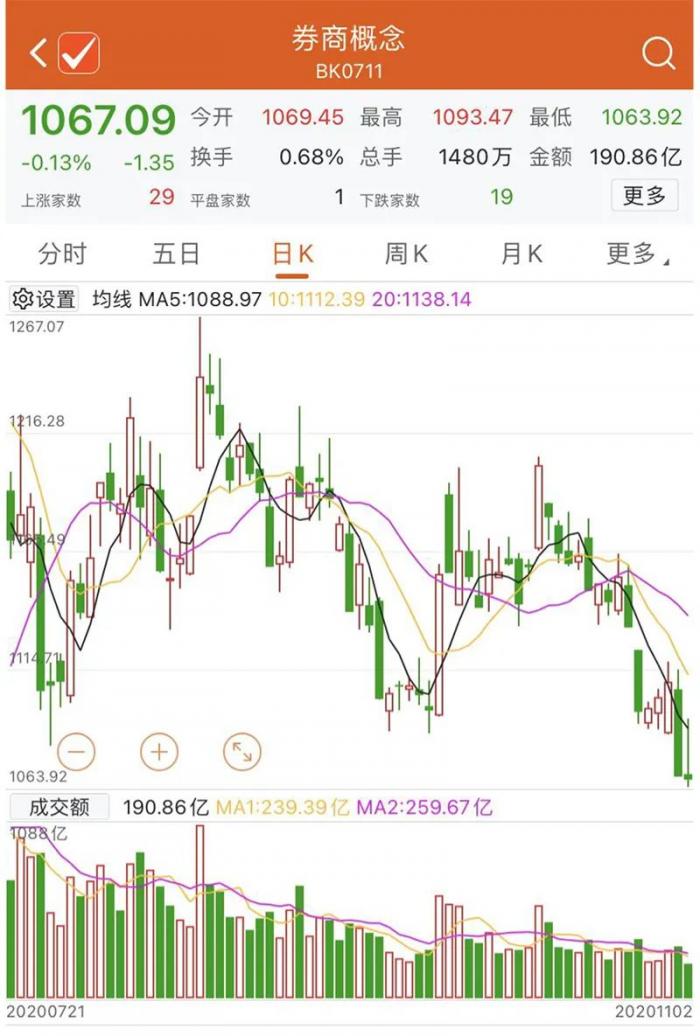 券商板块近期表现整体疲软或许也是中金公司上市首日开板的背景因素。虽然A股券商前三季度业绩普涨,但是近期市场表现整体乏力。