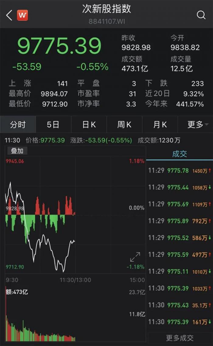 次新股板块多股跌停