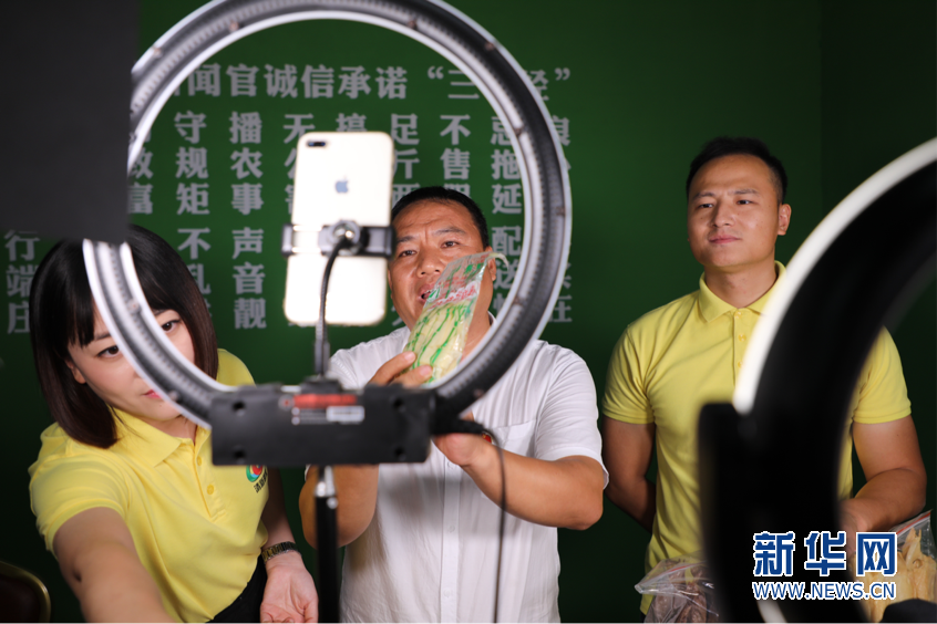 图为刘逢明直播带货。在水西村村民的共同努力下,线上线下互动的的消费扶贫模式正走向成熟,推动水西村成为“网红村”。