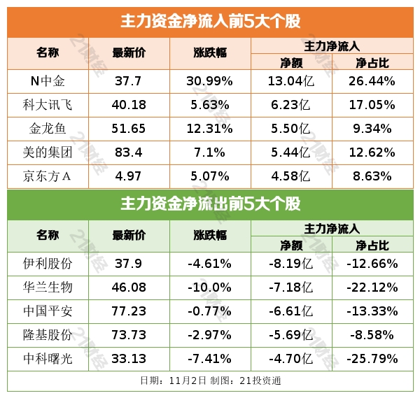 个股方面,北向资金净买入京东方A(000725.SZ)、格力电器(000651.SZ)、三七互娱(002555.SZ)、潍柴动力(000338.SZ)、新华保险(601336.SH)居前,净卖出宁德时代(300750.SZ)、海尔智家(600690.SH)、泸州老窖(000568.SZ)、中国平安(601318.SH)、五粮液(000858.SZ)居前。