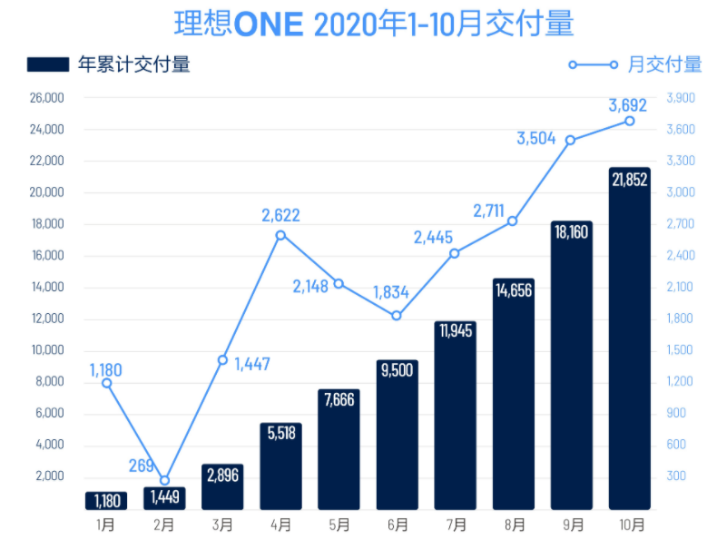 理想汽车10月交付3692辆,刷新交付量纪录