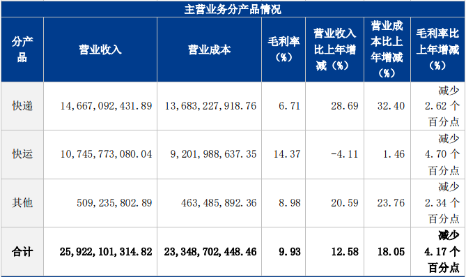 甚至,哪怕是打价格战,它们也不一定能够守住自己的“地盘”,净利润下滑48.54%的韵达营收增幅仅0.81%,净利润下滑123.96%的申通营收也下滑了5.73%。