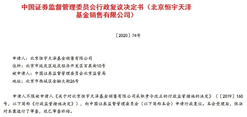 10月16日,证监会在其官网公布公告,认为北京监管局对博信盈泰、天和盈泰维等公司采取责令改正的行政监管措施并无不当,维持北京监管局对其责令改正的决定。