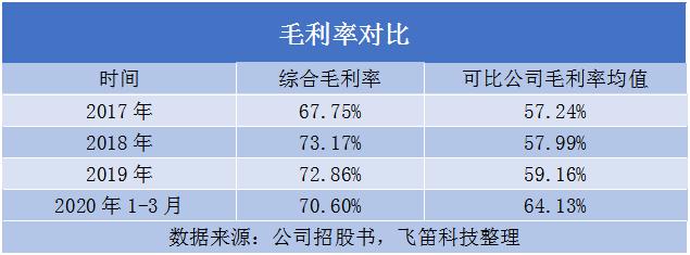 在公司业务毛利率变动的影响下,公司的综合毛利率也存在一定波动,分别为67.75%、73.17%、72.86%和70.60%。高于可比公司的平均水平,公司解释主要由于产品结构不同、所处细分行业快速发展及产品具有竞争优势,所以毛利率较高。