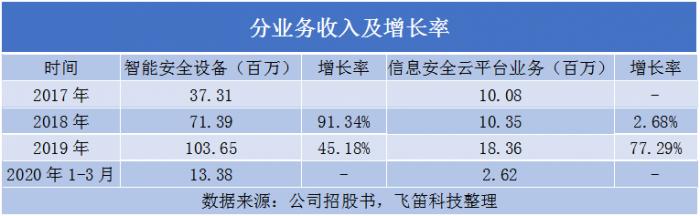 公司的智能安全设备产品包括智能安全网关、无线通信及其他智能设备。报告期内,公司智能安全设备的收入增长较快,2018年和2019年的增长率分别为91.34%和45.18%,与营收的增长相对应。
